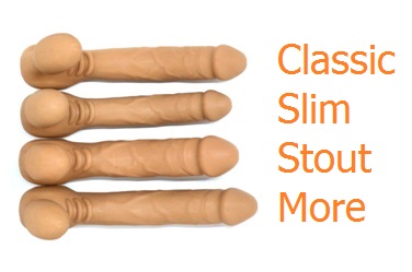 Realdoe® Classics are medium size - 6" long by 1-1/2" in diameter.Realdoe® Slim are smaller than Classics at 5-1/2" long by 1-1/4" in diameter.